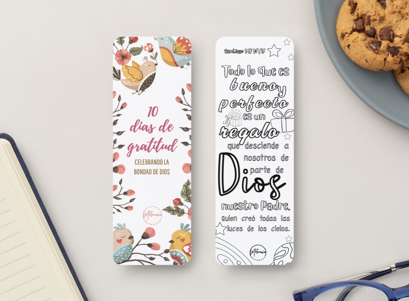 Este set de marca páginas para colorear nace para ayudarte a celebrar la bondad de Dios en lo cotidiano. Cada diseño está inspirado en versículos que nos recuerdan Sus dones perfectos, Su fidelidad diaria y la paz que gobierna nuestros corazones cuando permanecemos en la Palabra de Dios.